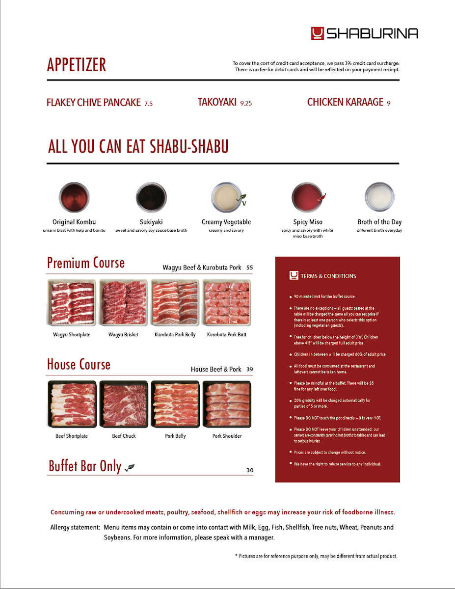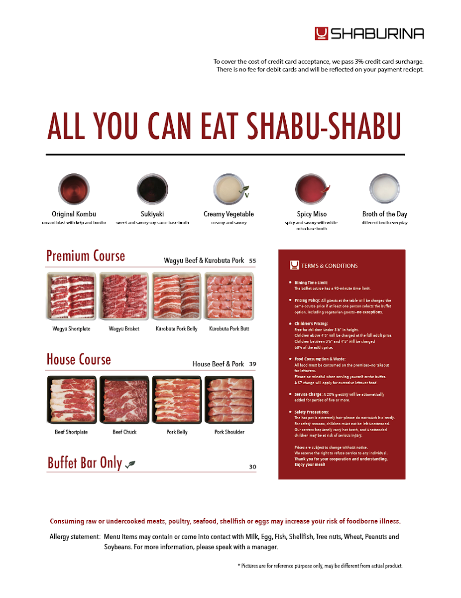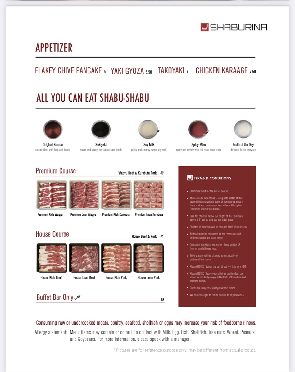 What sets Shaburina apart is its affordable yet indulgent buffet-style dining, where you can enjoy unlimited hot pot for a reasonable price—a feature that keeps customers returning for more. Reviews show that many patrons appreciate the care and attention to quality, with one satisfied customer stating, “The meat quality is really good. Service is fast.” This hot pot treasure’s menu caters to all types of diners, with options to suit both a casual meal and a celebratory feast.